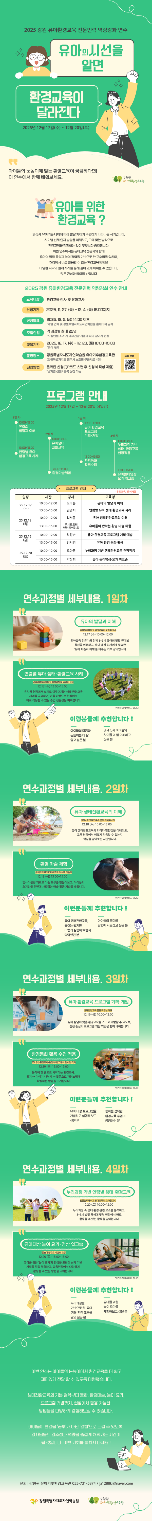 공지사항 "2025 강원 유아환경교육 전문인력 역량강화 연수" 참가 모집